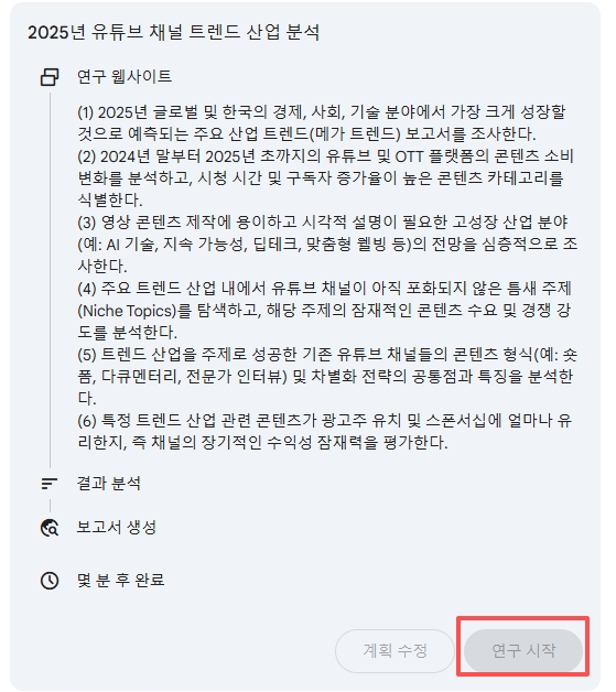 3,검색어 '2025년 가장 유튜브 채널 만들기 좋은 트랜드 산업 분석' 입력후 엔터